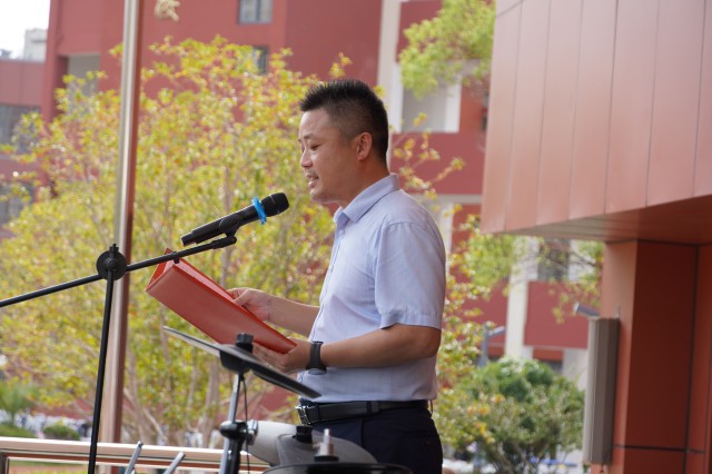 副校长王正为本届体育节致开幕辞。他首先向筹备此次盛会的师生表示感谢,并重申了学校对体育育人工作的高度重视。他鼓励全体运动员在赛场上释放活力、挑战自我、尊重规则,不仅赛出优异成绩,更要展现优良品格,将竞技场上永不言败的精神,延伸至求知的课堂与未来的人生道路。