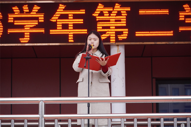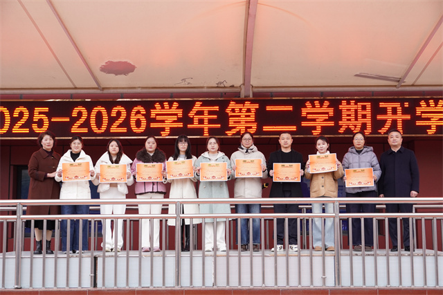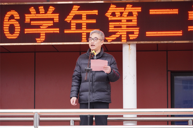 典礼最后,校党总支书记、校长周德岳作《骐骥驰骋·策马新篇》新学期致辞。在致辞中,回望过去一年学校高质量发展的累累硕果,他用三句话点亮全校师生前行之路:一是登高望远,将“不畏浮云遮望眼”的底气扎根于日复一日的行动之中;二是乘风破浪,让“扶摇直上九万里”的志气照亮每一天的脚踏实地;三是上下求索,以“咬定青山不放松”的韧劲在挫折中不断修正、静待破茧。这不仅是一份期许,更是一声号角。他希望全体师生新年如骏马奔腾,以底气立身、以志气定向、以韧劲致远,在新征程上跑出属于自己的辽阔天地。