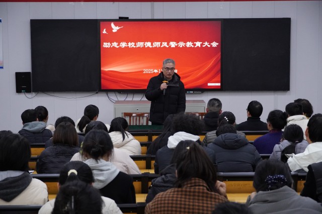 为强化教师队伍廉洁自律意识,营造风清气正的育人环境,12月18日下午,励志学校在校合班教室组织召开师德师风警示教育大会。全体教师参会,会议由校办公室主任倪艳松主持,通过“案例剖析、制度宣讲、自查自纠”三维度推进,为师德师风建设注入新动能。