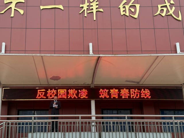 为切实筑牢校园安全防线,增强全体师生对校园欺凌的认知和防范能力,10月20日上午,励志学校全体师生共聚操场,举行“反校园欺凌、筑青春防线”主题升旗仪式。校领导班子成员、法治副校长杜道靖参加了仪式。