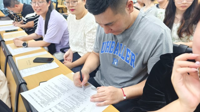 仪式上,教学处顾小敏主任宣读学科类师徒名单(22对),涵盖语文、数学、英语等9大学科;学生处杨根主任公布德育类师徒名单(13对)。师徒现场签订结对协议,校领导为导师颁发聘书,明确“带德、带才、带教、带研”四维职责。