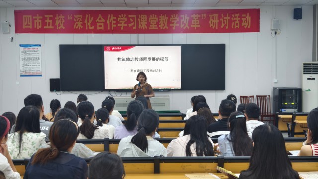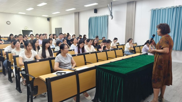 教学处副主任黄乐解读《青蓝工程实施方案》,提出师徒通过“听课备课、课堂展示、教学研讨、自我发展”四大成长路径。