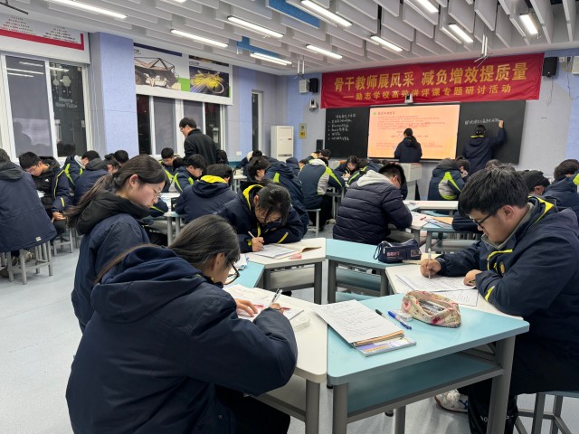 12月23日下午,励志学校继续开展骨干教师讲评课专题研讨活动。本次活动由初三化学组黄乐老师进行示范展示,校党总支书记、校长周德岳,校教育教学总监康敏以及全校理科教师参与观摩。