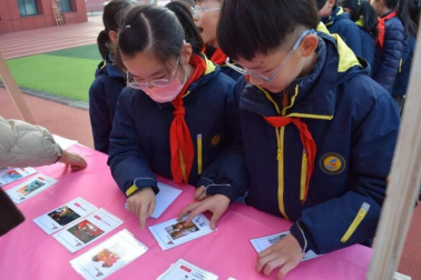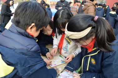 现场,同学们手持闯关卡积极参与,成功通关可获印章,集满七枚能兑换精美纪念品,欢声笑语不断。