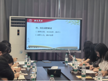 接下来,施校长通报上学期对行政人员、级部主任及学科主任的满意度测评结果,从整体表现、表彰反馈及改进建议三方面进行详细说明。最后,施校长解读新学期岗位调整方案,并对开学前的筹备工作及学期重点任务作出具体安排,为新学期各项工作有序开展奠定基础。