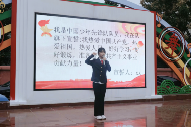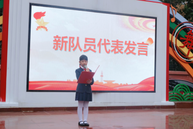 新队员代表耿若溪用稚嫩而坚定的声音发言,表达了对老师、家长的感谢,并承诺一定不会辜负少先队组织和老师的希望。从今天开始,用少先队员的标准来衡量自己,热爱学习,关心集体,团结同学,时刻准备着为共产主义事业而奋斗!