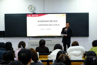 师德是教育之魂,副校长蔡银海以“用爱书写师魂”为题开展师德师风警示教育,要求全体教师严守师德底线,铭记育人初心,做有温度的教育,当有爱的教师。